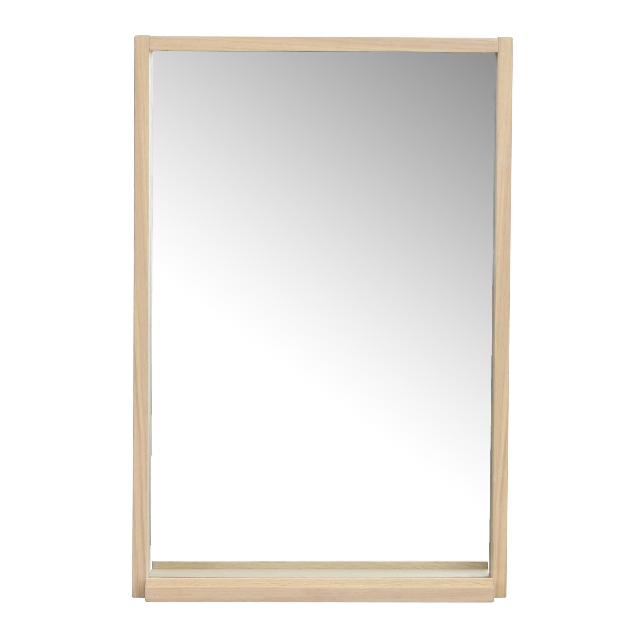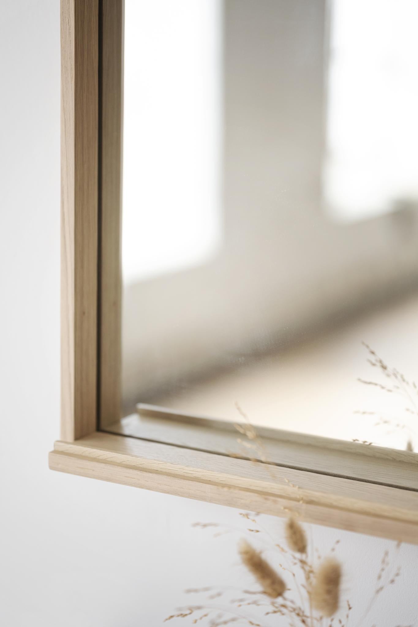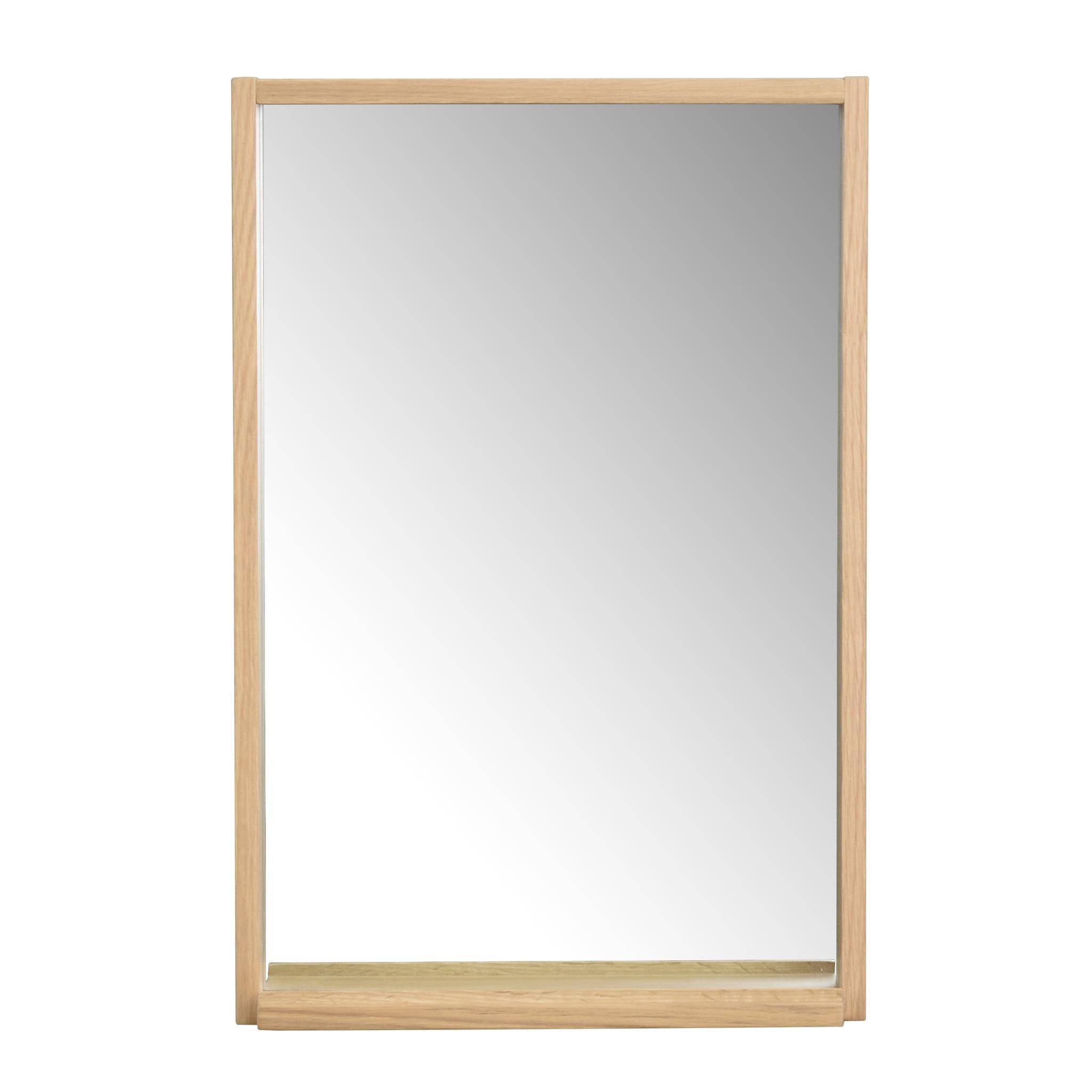 • Rektangulär spegel med ljus träram i ek och liten hylla i nederkant