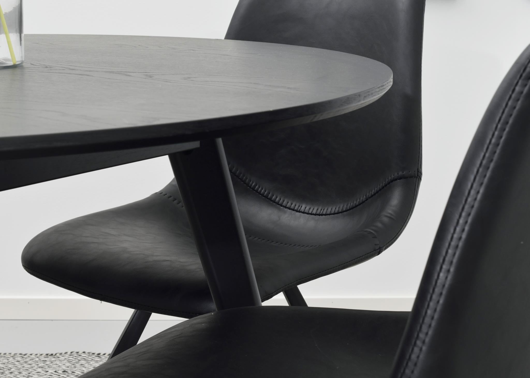 • Svart matstol i konstläder med svarta träben och moderna sömdetaljer