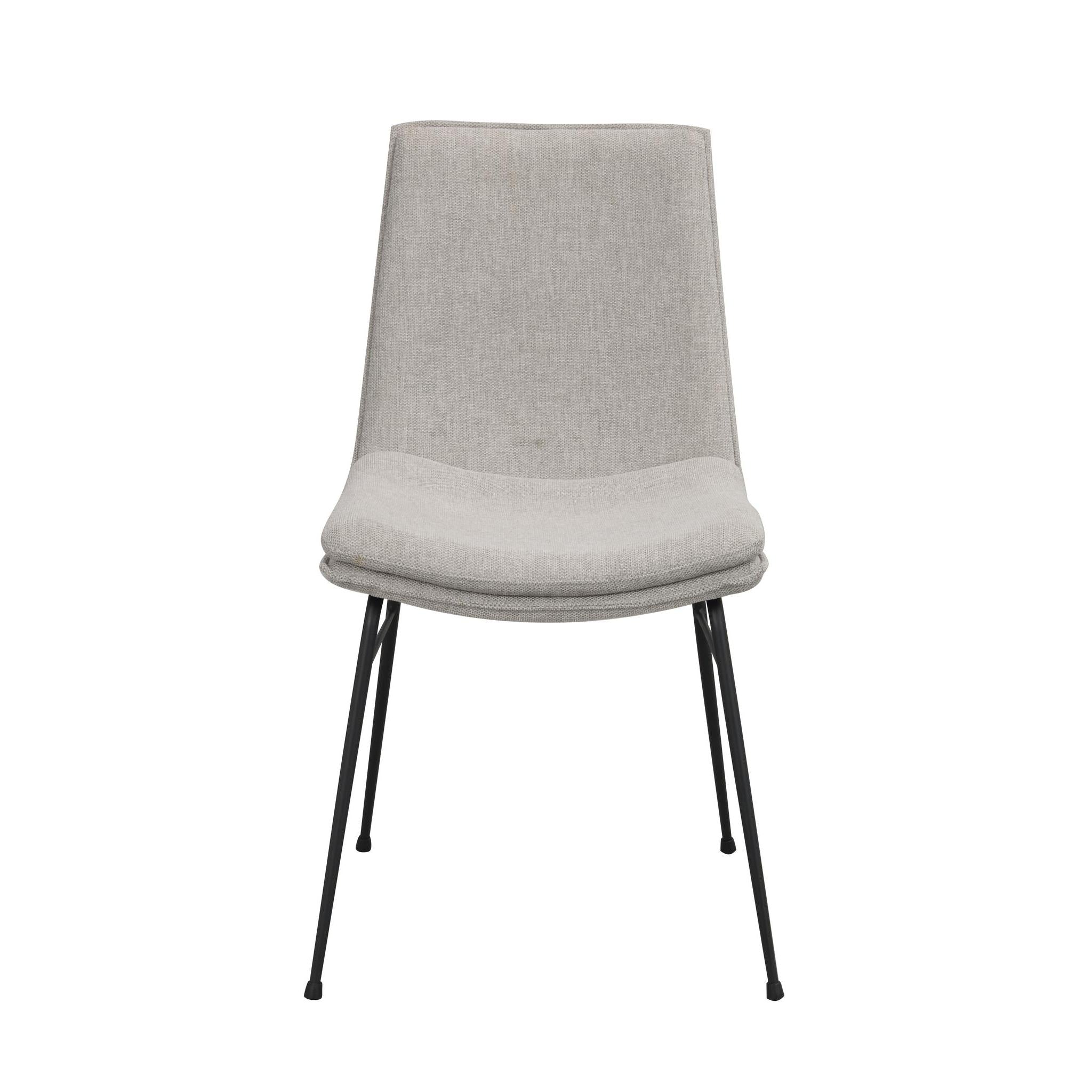 • Grå matstol med svarta metallben och stoppad sits, front vy mot vit bakgrund