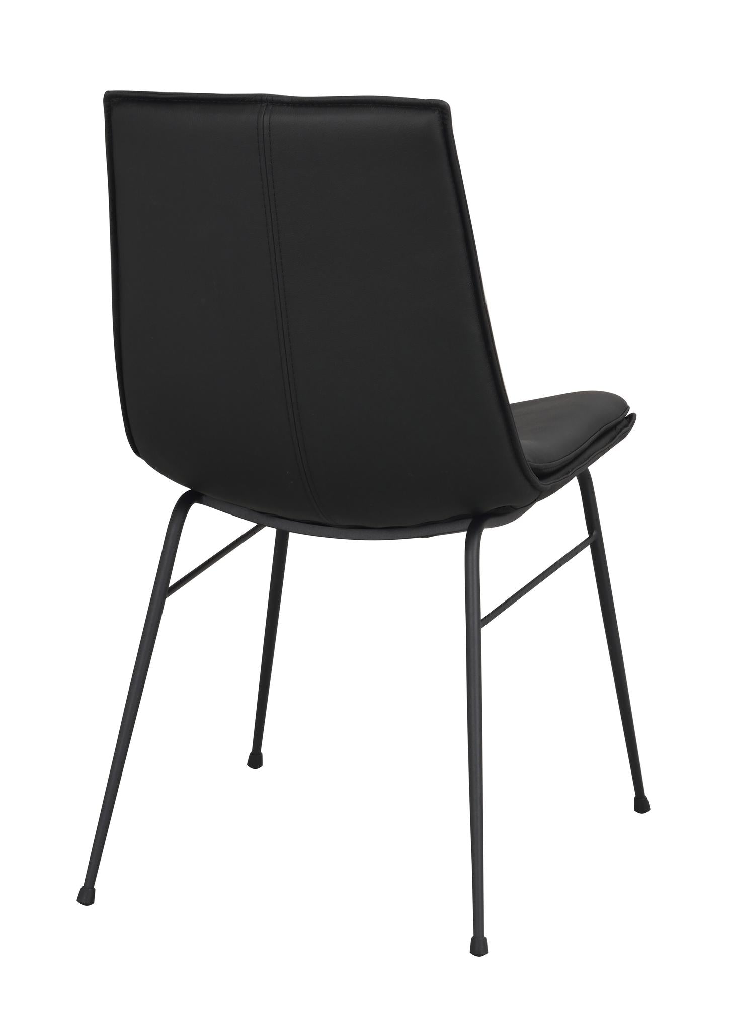 • Svart matstol med metallben och konstläderklädsel i modern skandinavisk design