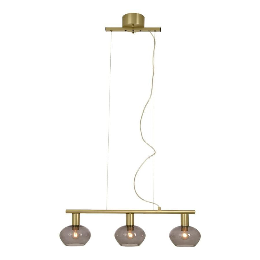 • Taklampa i mässing med tre rökfärgade glaskupor, modern pendelbelysning för matbord