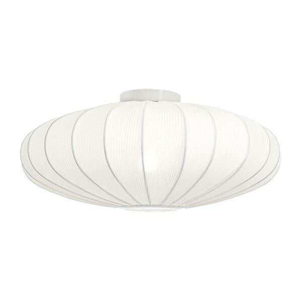 • Vit taklampa i UFO-form med plisserad textilskärm och organisk design