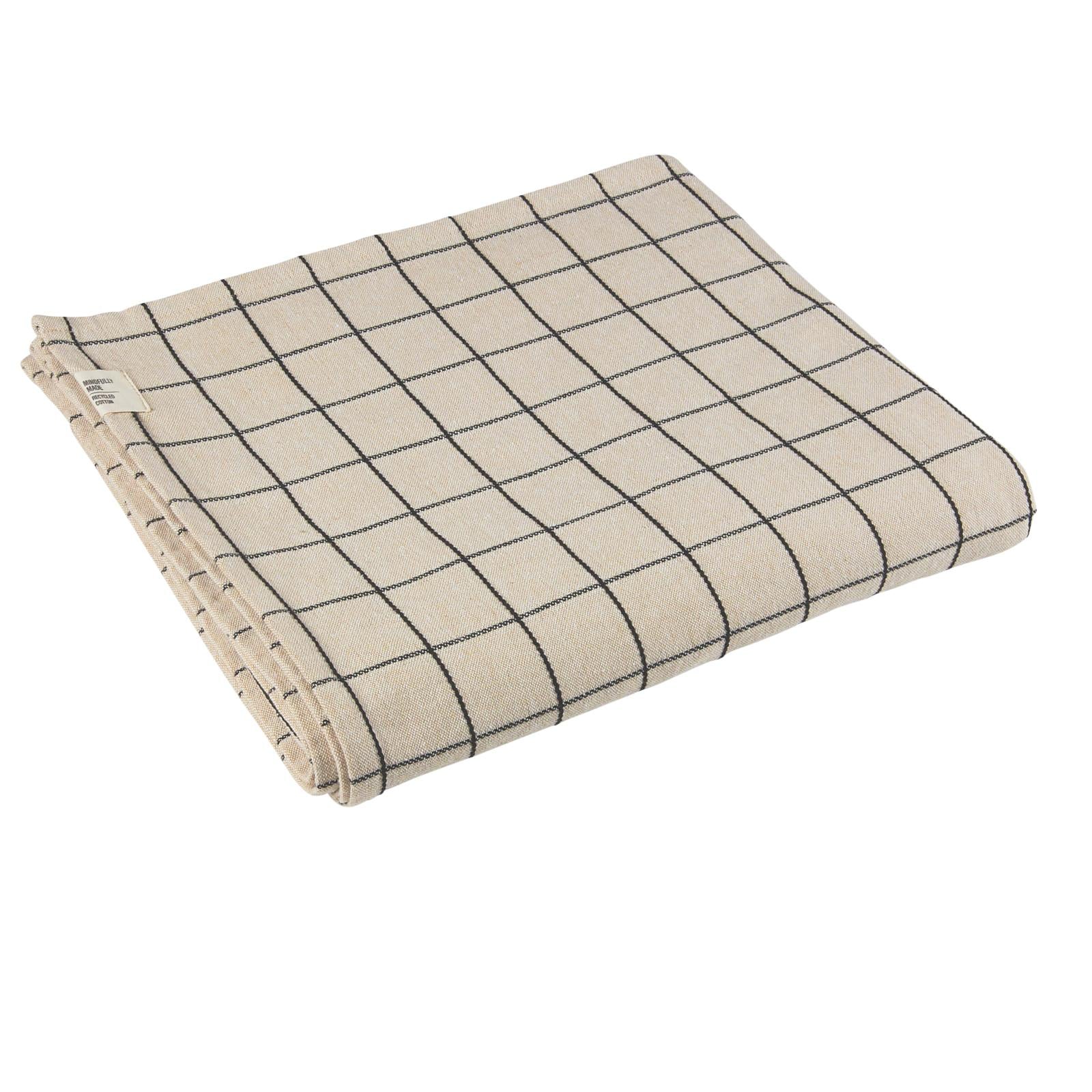 Duk tillverkad av återvunnen bomull / polyester som både är ett miljövänligt och funktionellt val. Garnfärgad mönstervävd ruta som ger den en charmig och traditionell stil.
