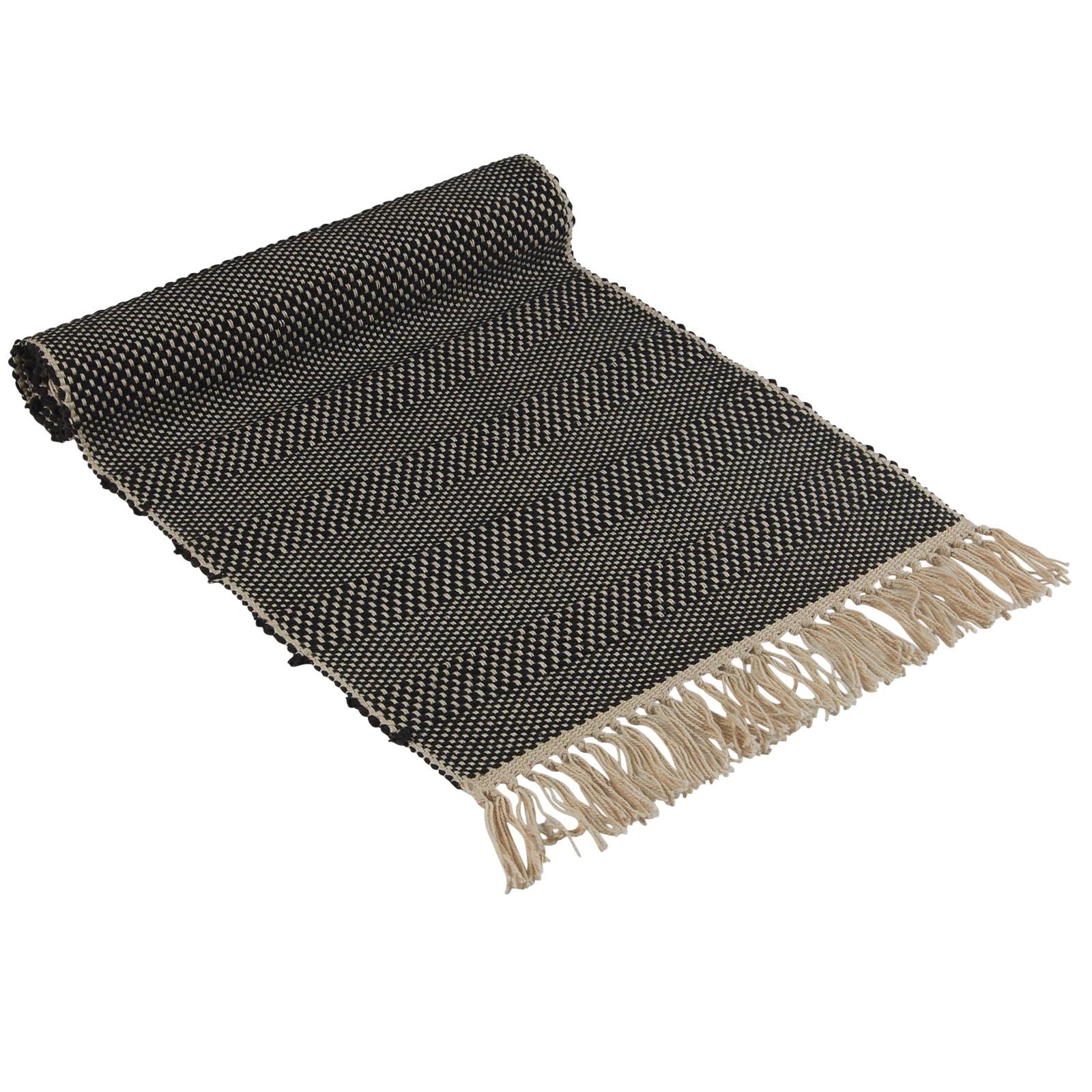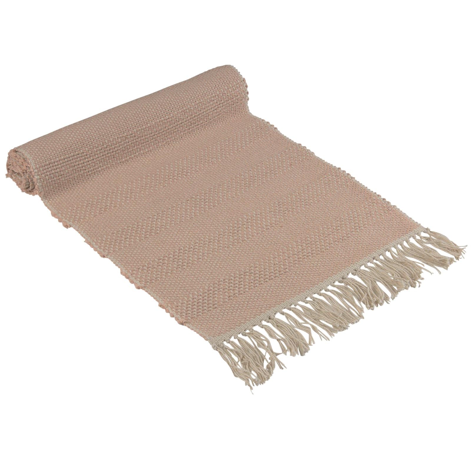 Den handvävda bordslöparen har en naturlig och rustik känsla som ger en personlig touch till ditt bord. Materialet, bomull, ger bordslöparen en mjuk och behaglig känsla samtidigt som fransarna lägger till en lekfull och bohemisk karaktär.