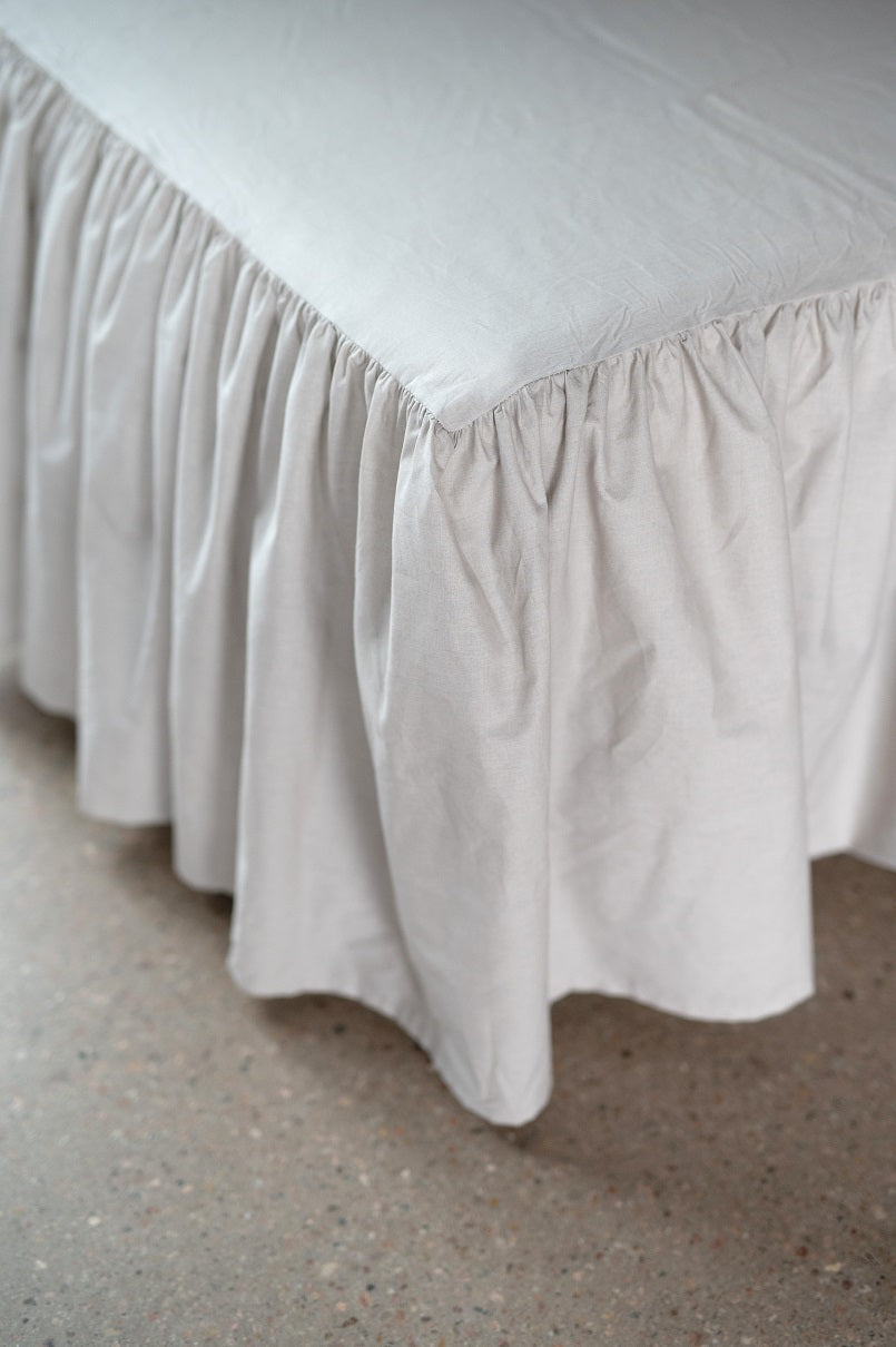 Sängkappa i en slät bomullskvalité med volang nertill, som är en elegant och tidlös detalj och passar de flesta sängmodeller.