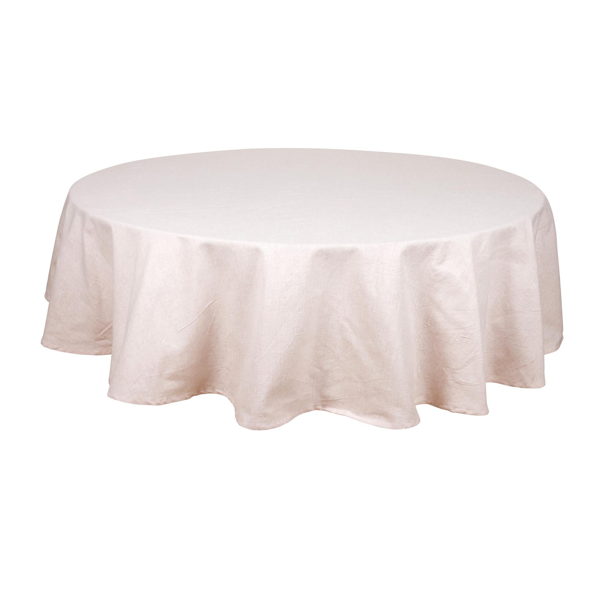 Denna runda duk är tillverkad av återvunnen bomull och återvunnen polyester, vilket gör den både hållbar och miljövänlig. Dess stilfulla design och linnekänsla ger den en elegant och tidlös look. Duken passar perfekt för att dekorera bordet med, vid olika tillfällen och evenemang.