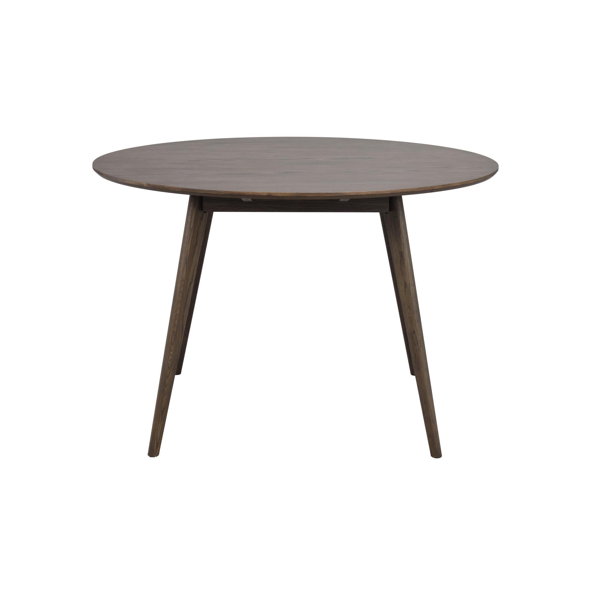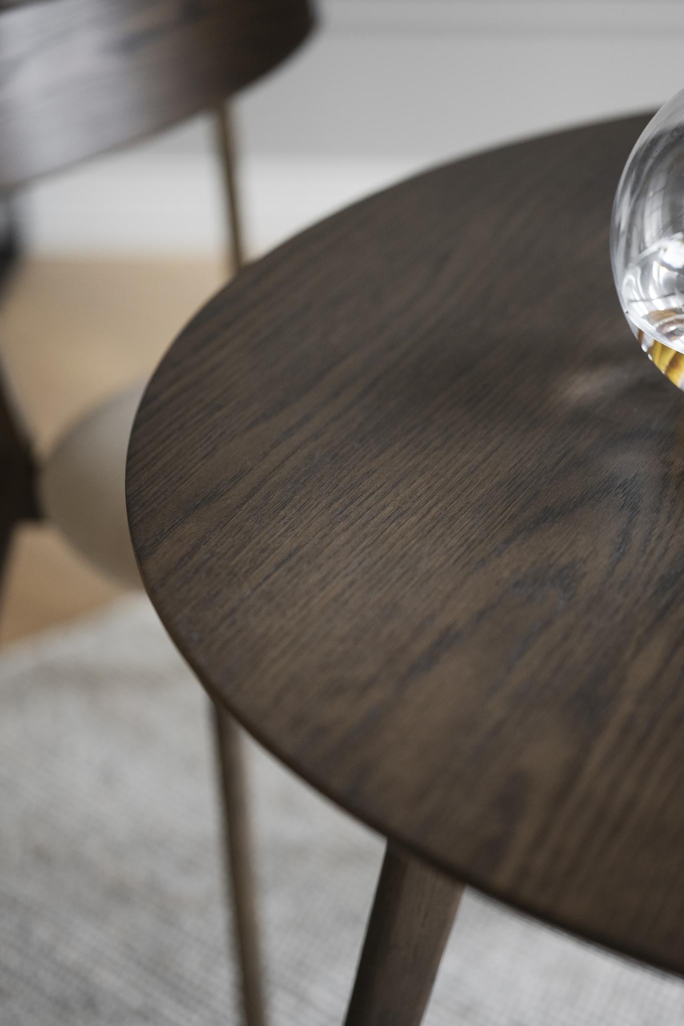 Yumi runt matbord med lätt utställda ben har en tidlös skandinavisk design som håller år efter år. Den stilrena och nätta formen gör att bordet passar perfekt till mindre utrymmen. Matbordet ingår i den älskade serien Yumi som är en av Rowico Homes mest populära serier. Bordsskivan består av brunlackad ekfaner och benen av massiv ek. Kombinera gärna med andra möbler i serien Yumi.