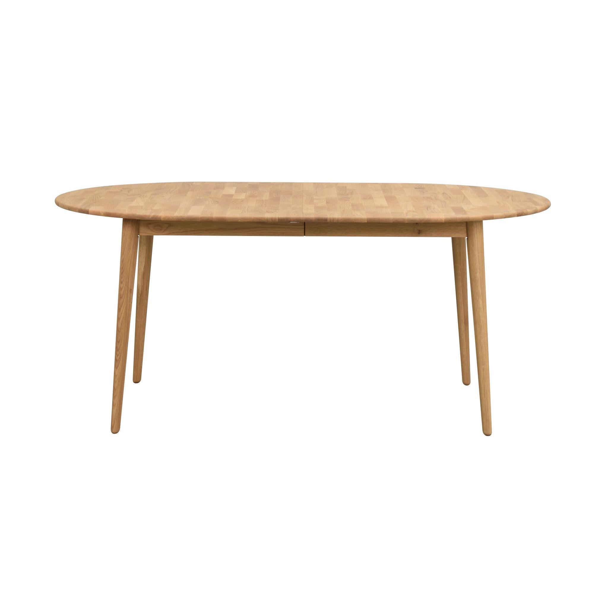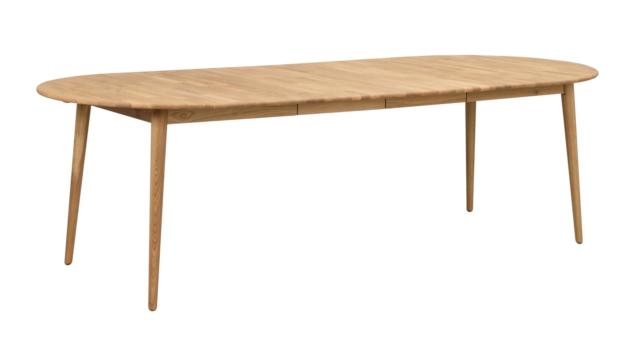 Tyler matbord 170 cm är ett ovalt bord i skandinavisk design som är tillverkad i Europa av massiv brunoljad FSC®-certifierad ek. En iläggsskiva ingår när man köper bordet och det går att komplettera med ytterligare en iläggsskiva på 40 cm, vilket då ger ett matbord på hela 250 cm. Finns i flera färger och storlekar.