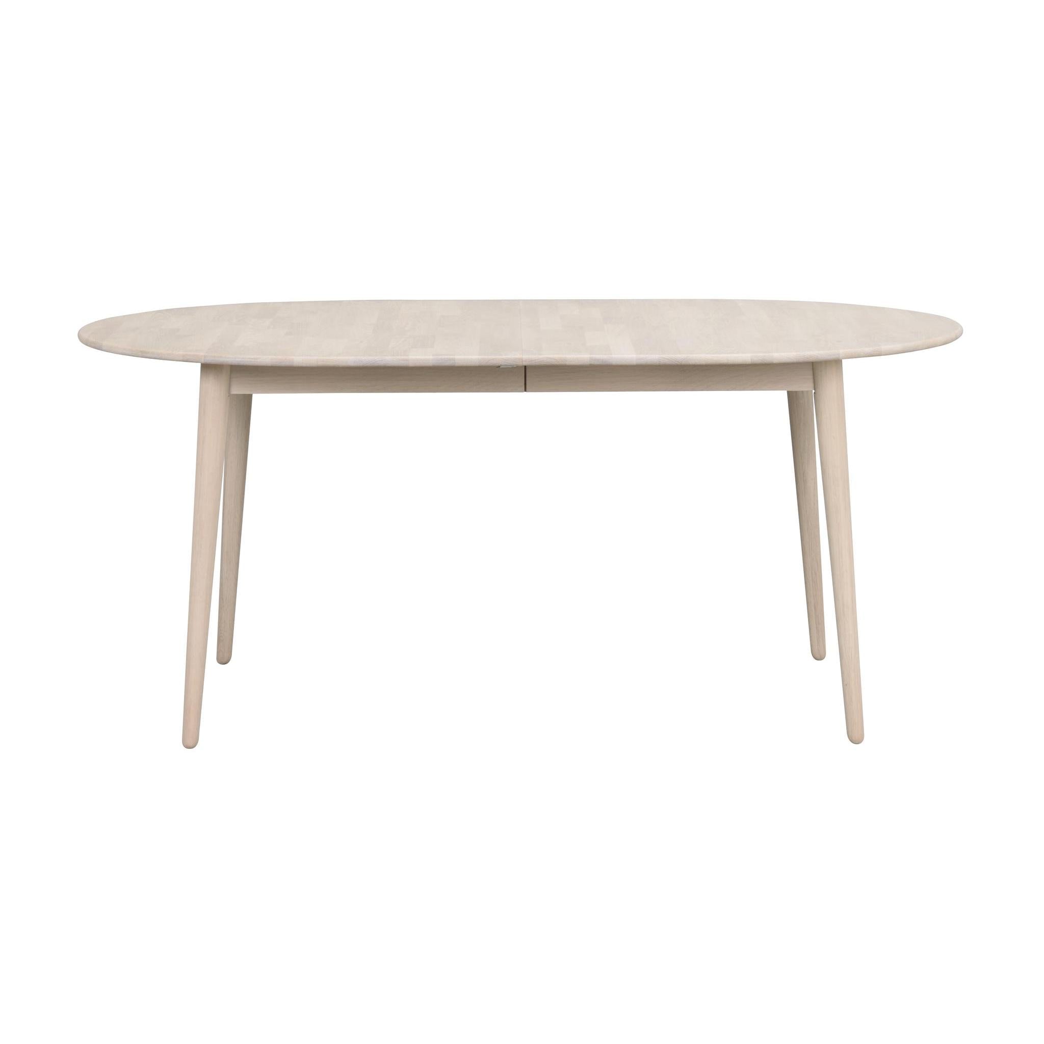 • Oval matbord i ljust trä med utdragsfunktion och fyra spetsiga ben i skandinavisk design