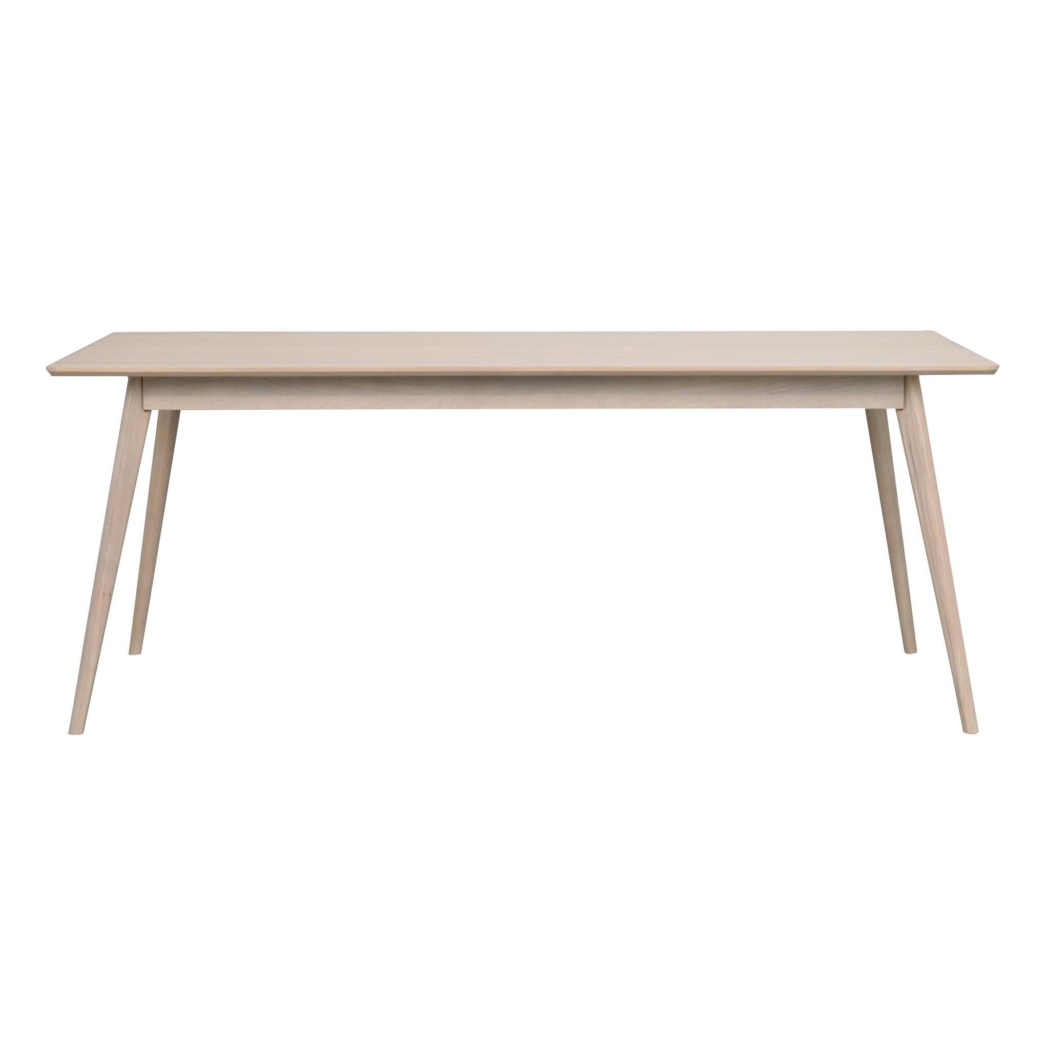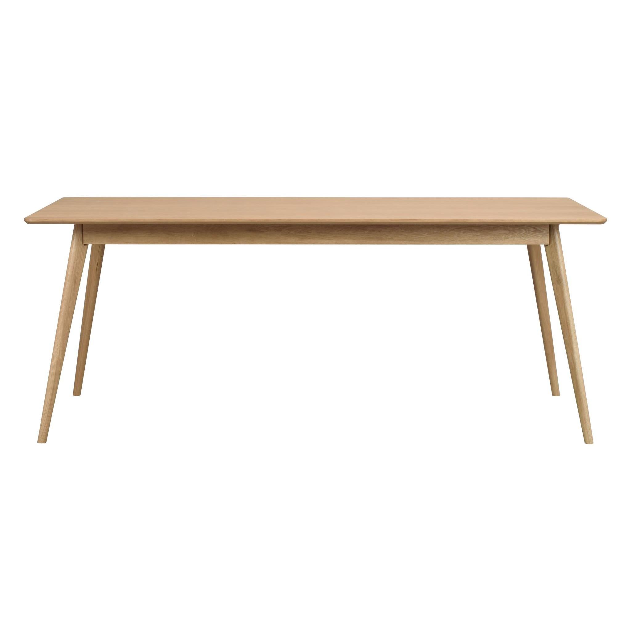 • Ljust träbord med sneda ben i skandinavisk design, rektangulärt matbord i naturlig ek